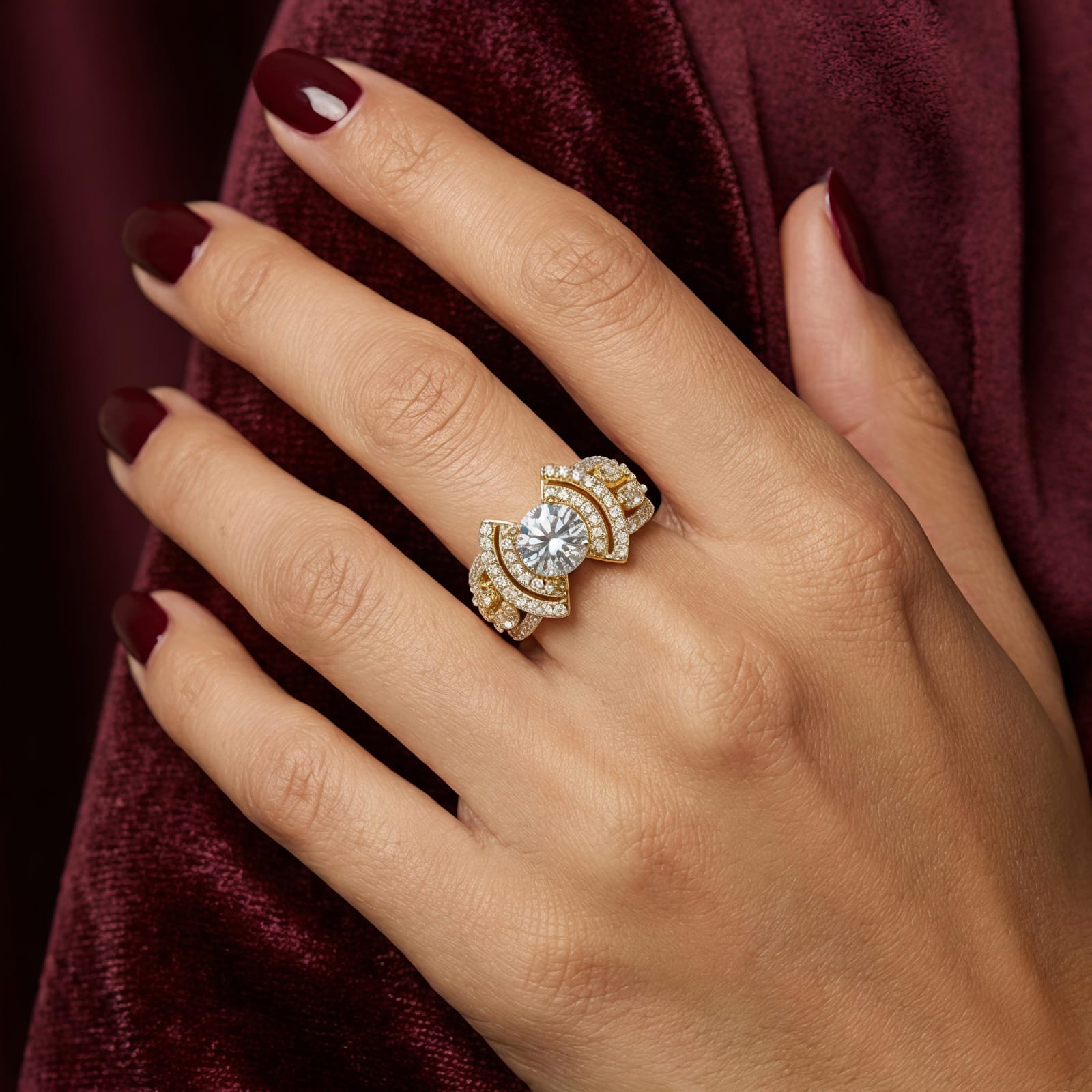 This ring is a definitive “power piece.” Its bold design makes it ideal for formal events, weddings, or festive celebrations. Pair it with a minimalist outfit to let the intricate craftsmanship take center stage, or stack it with sleek gold bands for a modern, maximalist look.