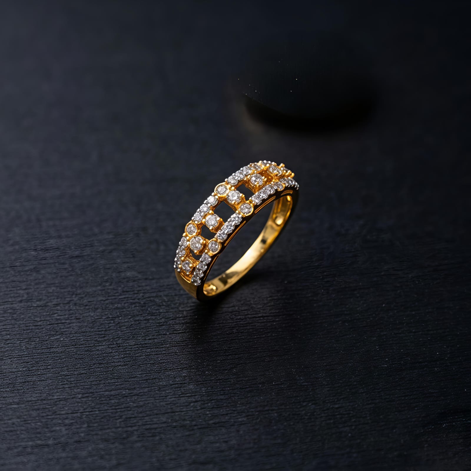 This beautiful American Diamond (AD) ring is designed to give you the luxury look of real diamonds without the heavy price tag. It’s a perfect mix of traditional gold tones and modern style.