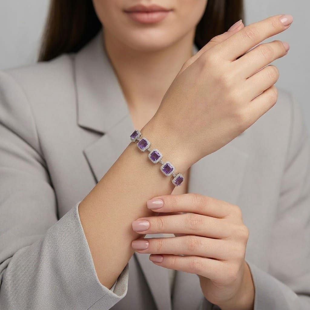 The “Diamond” Border: Each yellow stone is surrounded by a frame of tiny sparkling crystals. It gives the bracelet a “halo” effect, making the main stones look even bigger and shinier.