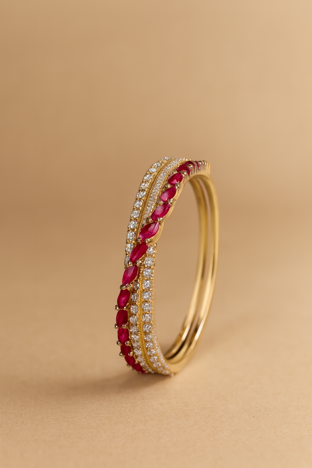 Add a touch of luxury with this exquisite imitation bracelet, featuring shimmering white stones and vibrant pink marquise-cut gems. Its triple-row design blends elegance and symmetry, with golden accents that elevate its charm. Lightweight yet striking, it’s perfect for weddings, festive occasions, or evening wear. Crafted to mimic fine jewelry, this piece offers high-end style at an accessible price. A must-have for every fashion-forward collection.